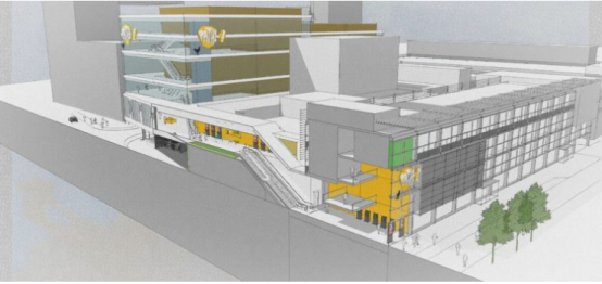 In addition, the municipality is developing the area around the A9 covering at the Stadshart. All plans are in the Concept Area Vision Traverse A9 - Stadshart . The main spearheads are a new pedestrian route between the Bomenbrug and the Stadsplein, the relocation of the entrance and exit of the Schouwburg parking garage, the arrival of a cinema at the rear of the culture strip and opportunities for developments to the north and south of the A9.