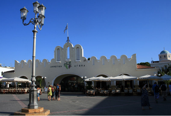 The ancient market place of Kos was considered one of the biggest in the ancient world. It was the commercial and commanding centre at the heart of the ancient city. It was organized around a spacious rectangular yard 50 metres (160 ft) wide and 300 metres (980 ft) long. It began in the Northern area and ended up south on the central road (Decumanus) which went through the city. The northern side connected to the city wall towards the entrance to the harbour. Here there was a monumental entrance. On the eastern side there were shops. In the first half of the 2nd century BC, the building was extended toward the interior yard. The building was destroyed in an earthquake in 469 AD.