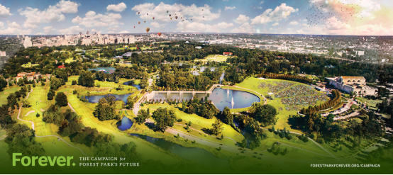 ₋Since the early 2000s, it has carried out a $100 million restoration through a public-private partnership aided by its Master Plan. Changes have extended to improving landscaping and habitat as well. The park's acreage includes meadows and trees and a variety of ponds, manmade lakes, and freshwater streams. For several years, the park has been restoring prairie and wetlands areas of the park. It has reduced flooding and attracted a much greater variety of birds and wildlife, which have settled in the new natural habitats.