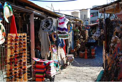 If you love negotiating for hand-crafted Mexican products, this is the place. You ask how much, counter with a lower offer and the negotiating fun begins on everything from pottery, glassware, furniture, baskets, rugs, leather, jewelry and hand made crafts. Business is done in English and American currency is preferred. Each visitor may bring back $800 worth of merchandise duty-free, including 1 liter of liquor (if you are 21 or older).